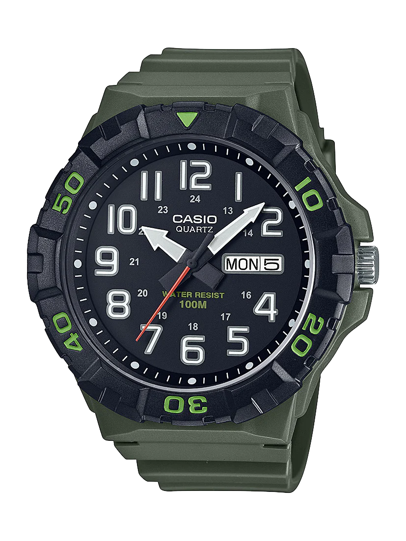 Slip on this sporty, simple watch with the bold design and practical features you’re looking for. Water resistance up to 100 meters frees you from worry when out in the rain or washing up. The easy-read day and date display keeps you functioning at your peak all day long.